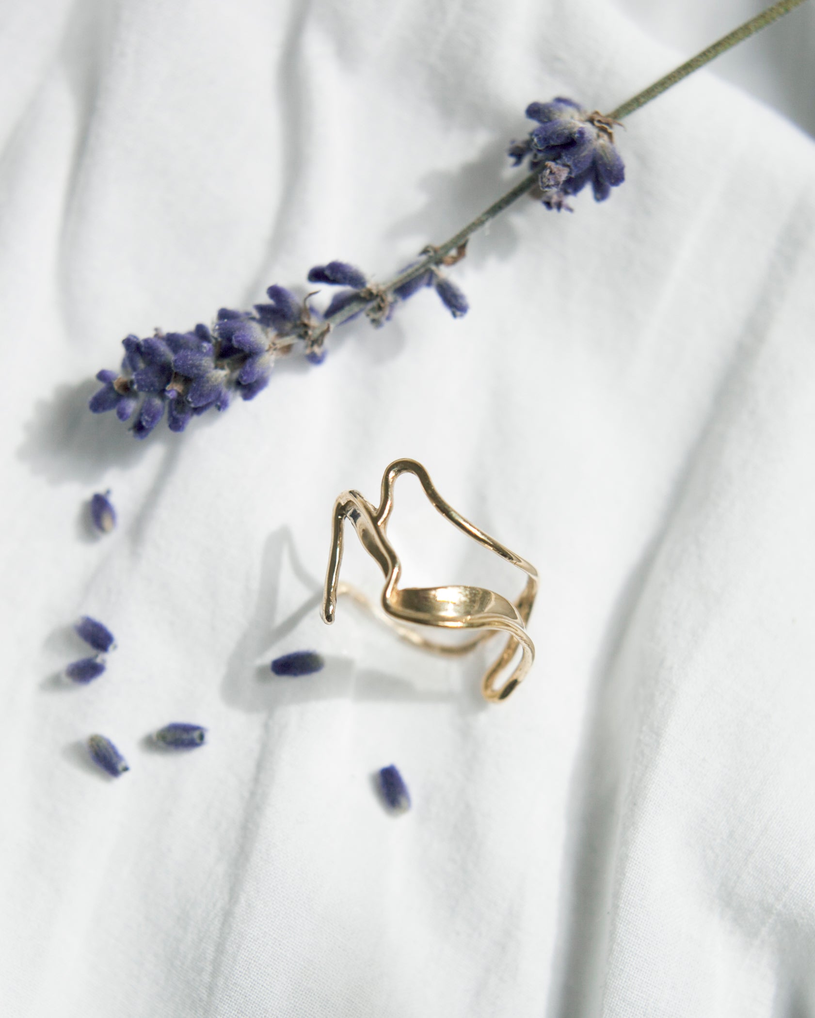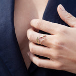 The curves and forms that take the shape of this ring were inspired by the art deco fashion illustration's of the French artist Erté. We discovered Erté's work while on a deep dive at the design library, let it transport us to glamorous decades of the past, and found ourselves sketching the Cadencia Ring out in the process.