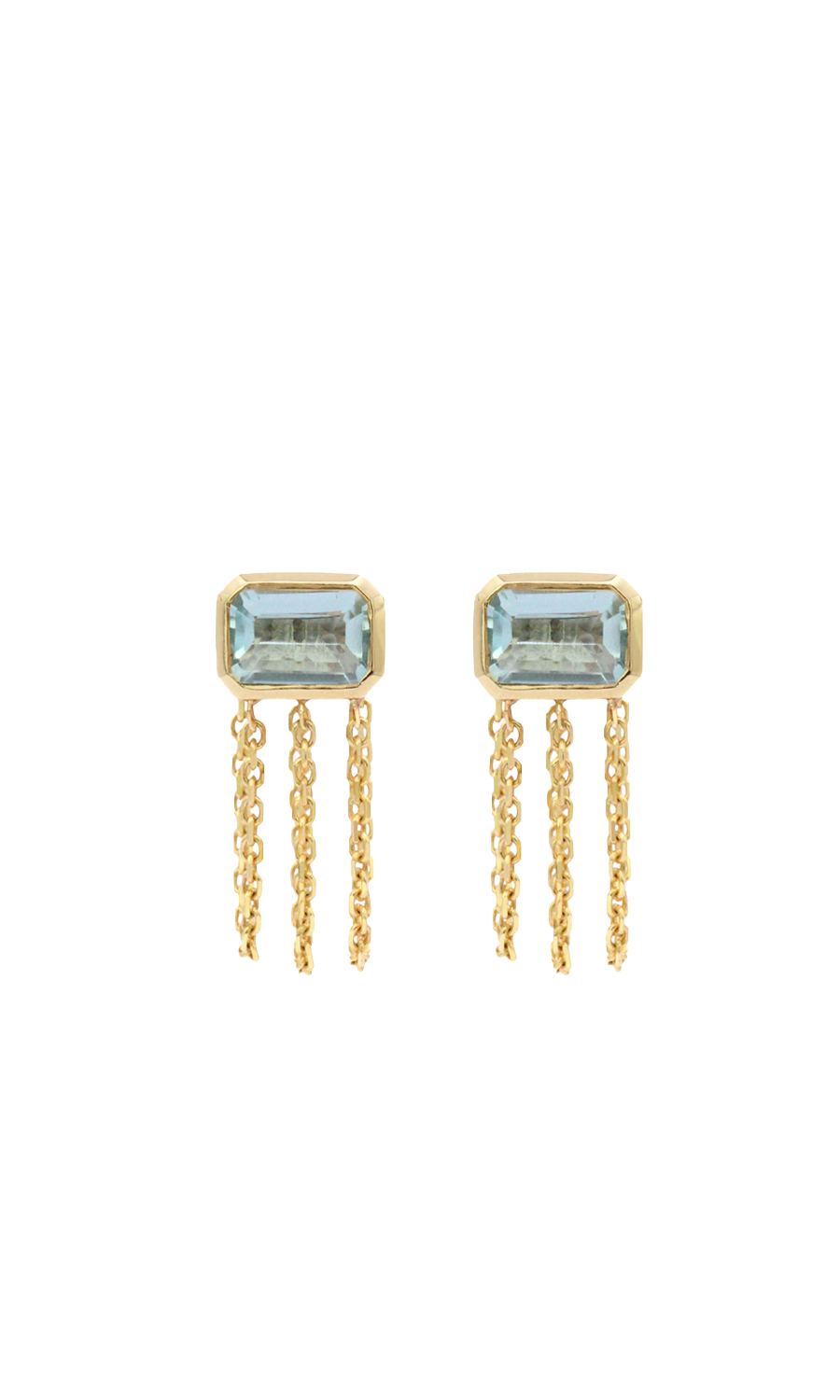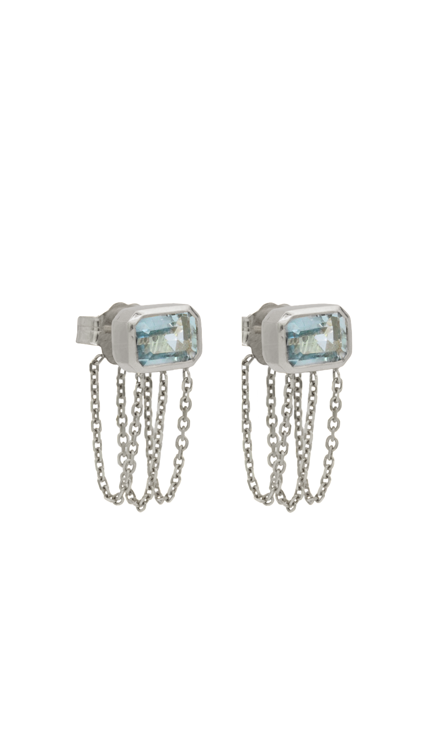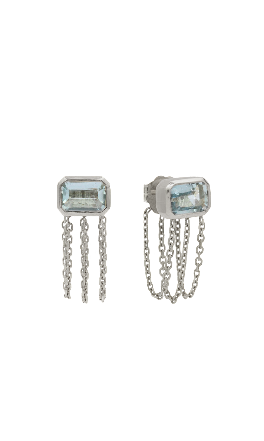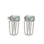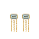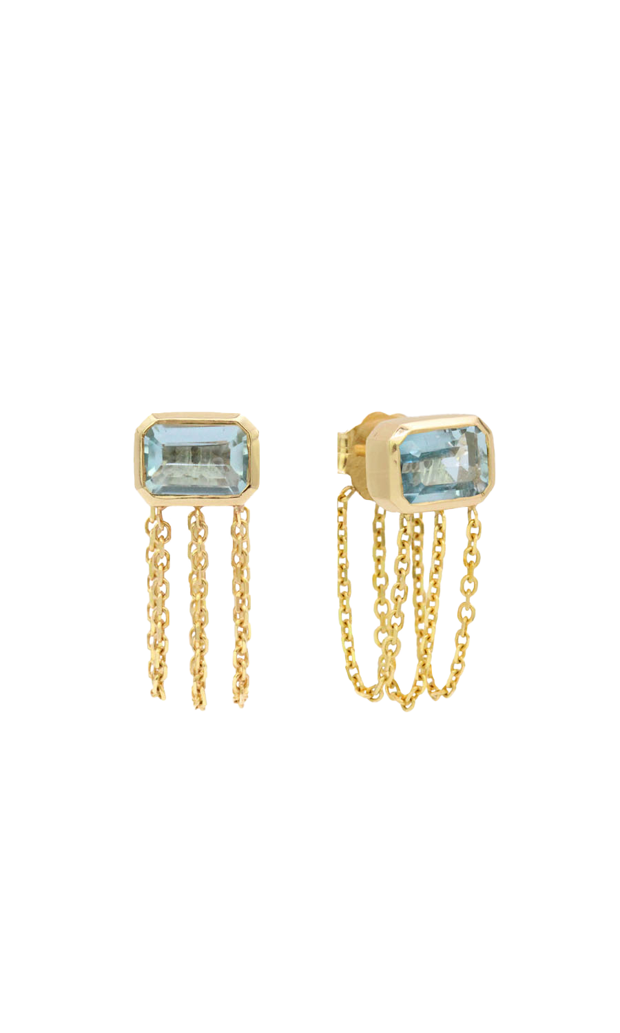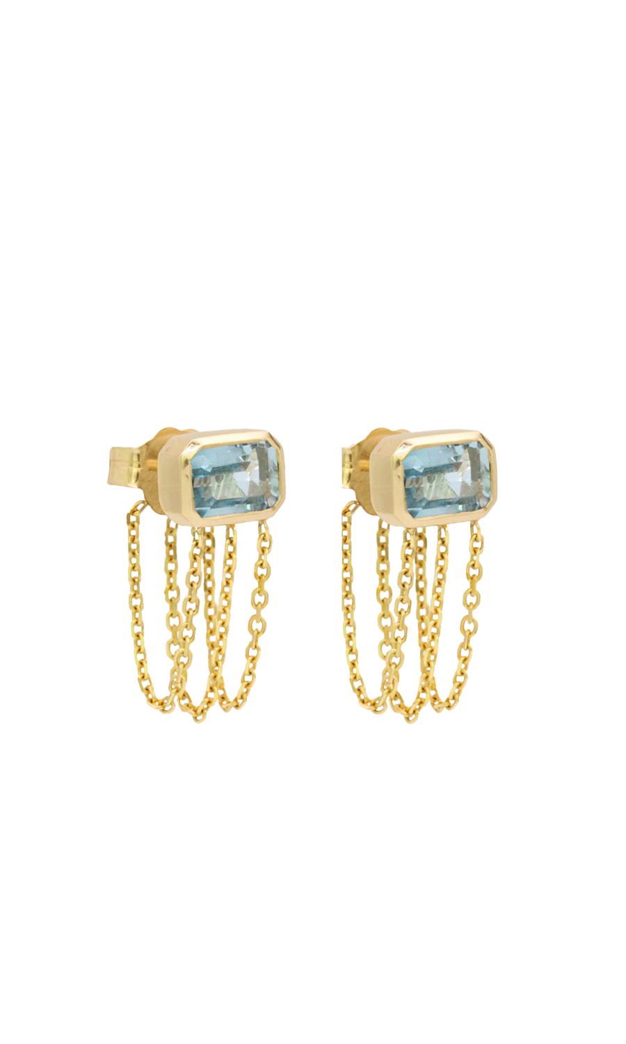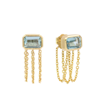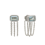These emerald cut aquamarines shine in the most serene blue. Chains are soldered to the stones setting and earring backs creating a chic stud/hugger earring.