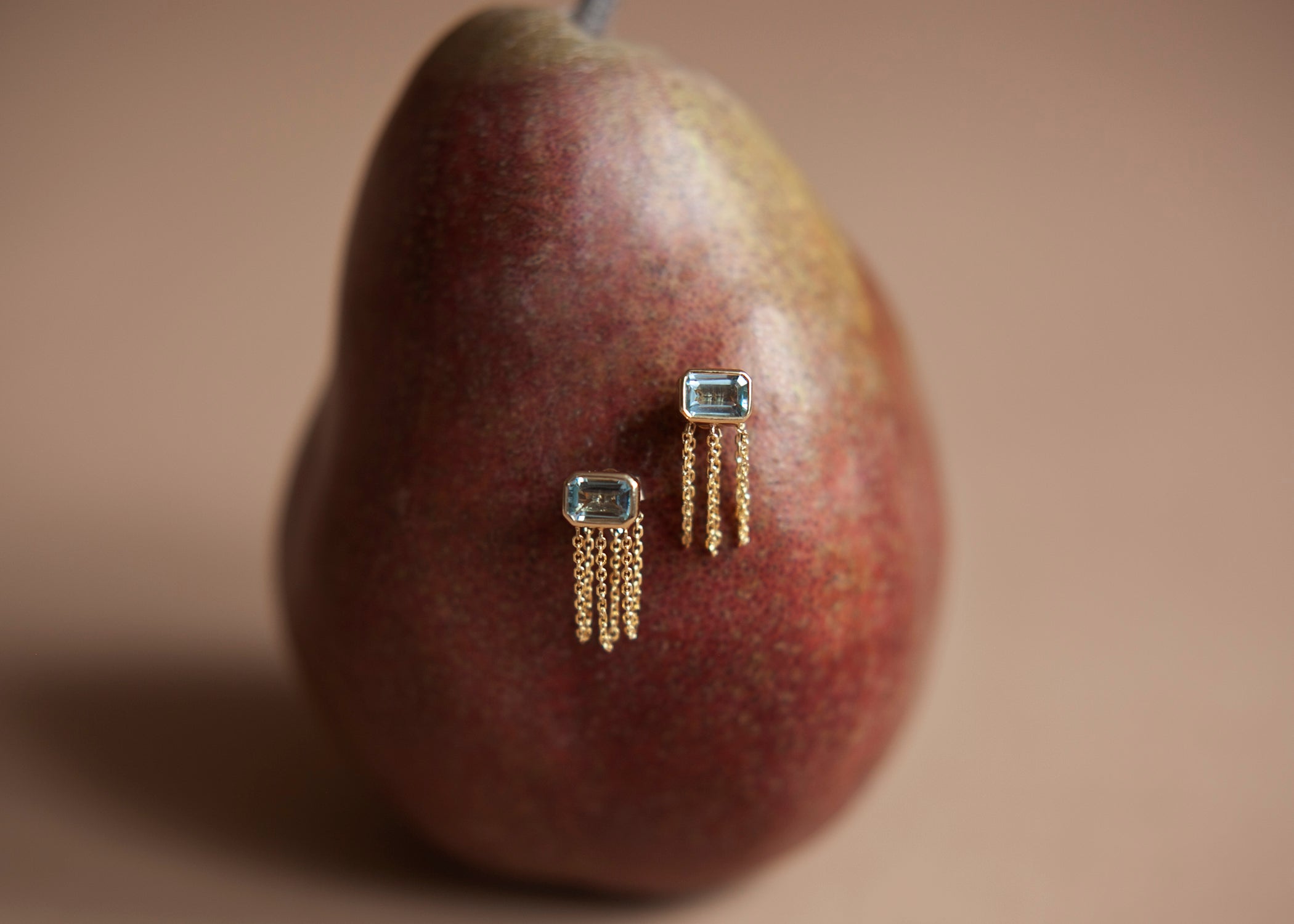 The aquamarines are sourced from Brazil and hand cut in NYC.