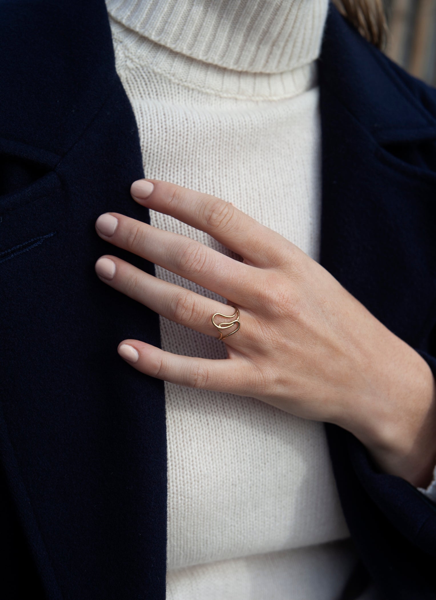 The curves and forms that take the shape of this ring were inspired the organic shapes of the cobble stones that line the streets of medieval villages in the South of France. No single cobble stone is the same, yet they all fit together harmoniously, much like the shapes that interlock in this ring.