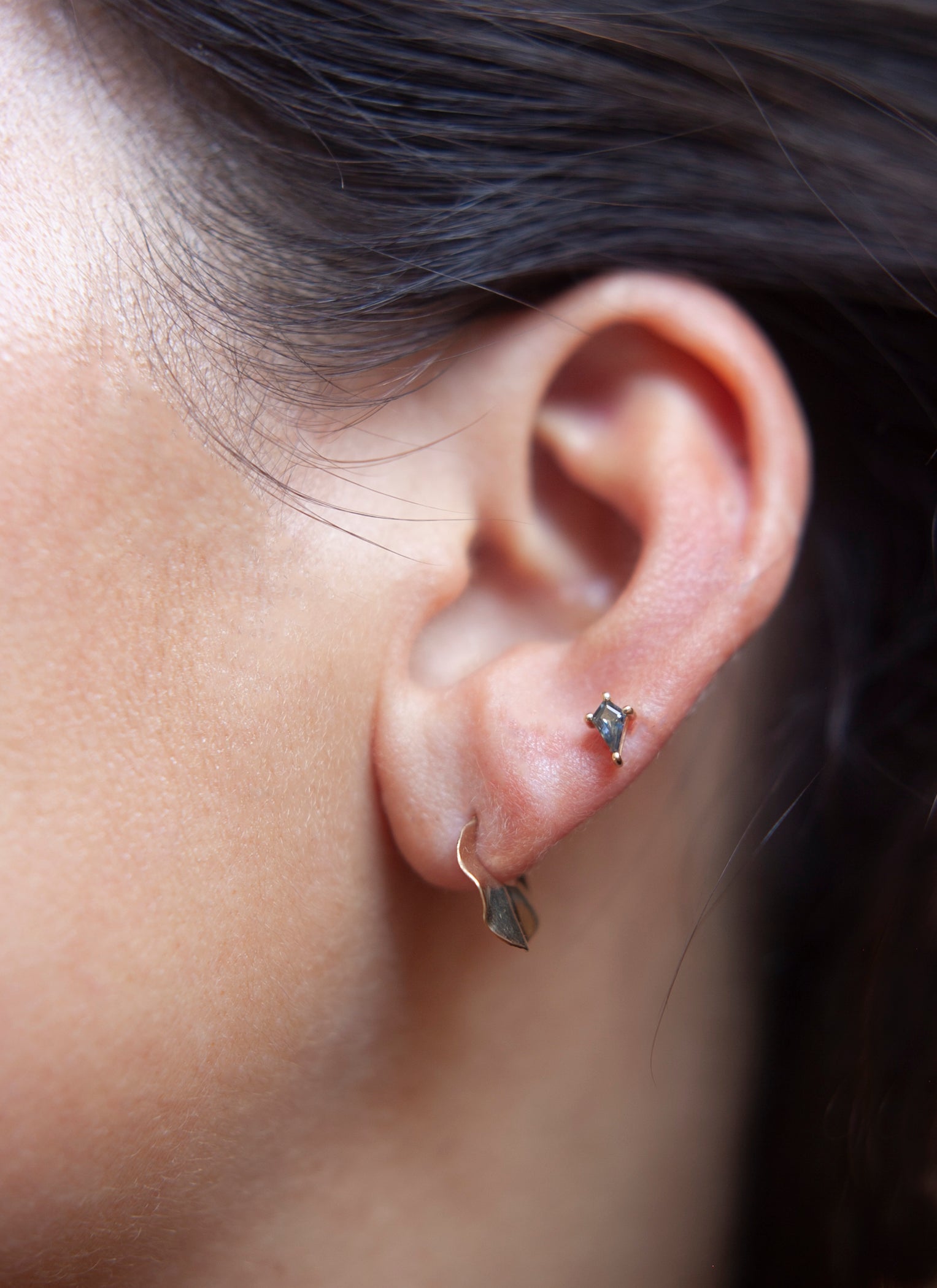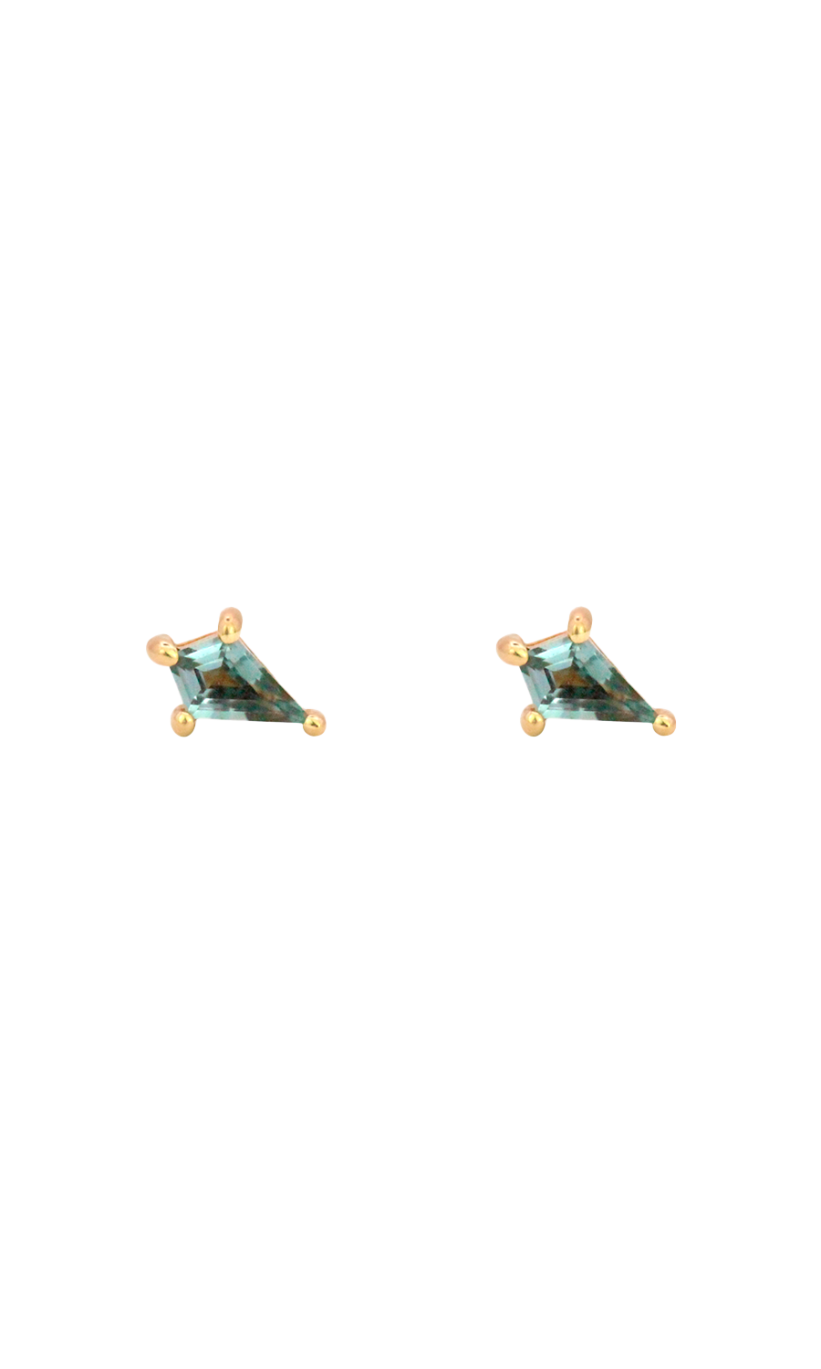 Montana Sapphire, kite shapes studs. Perfect on their own or as an addition to your earring stack.