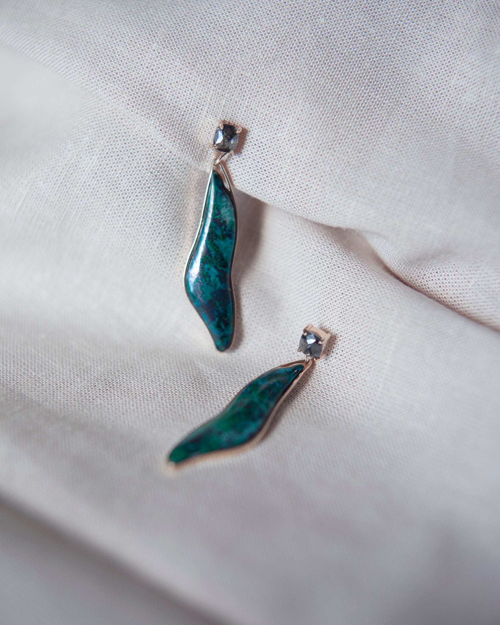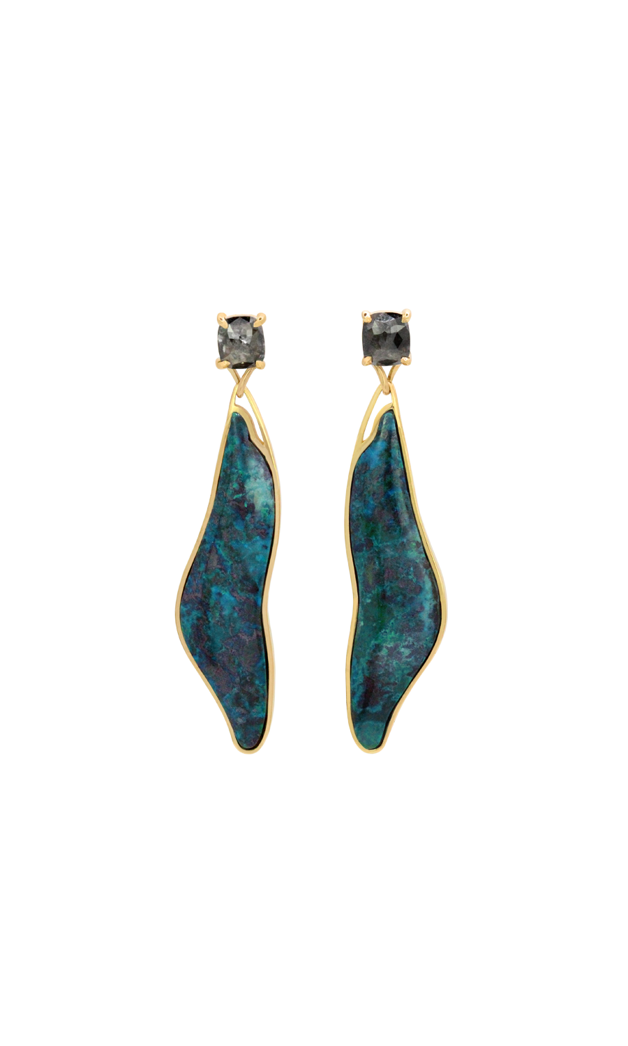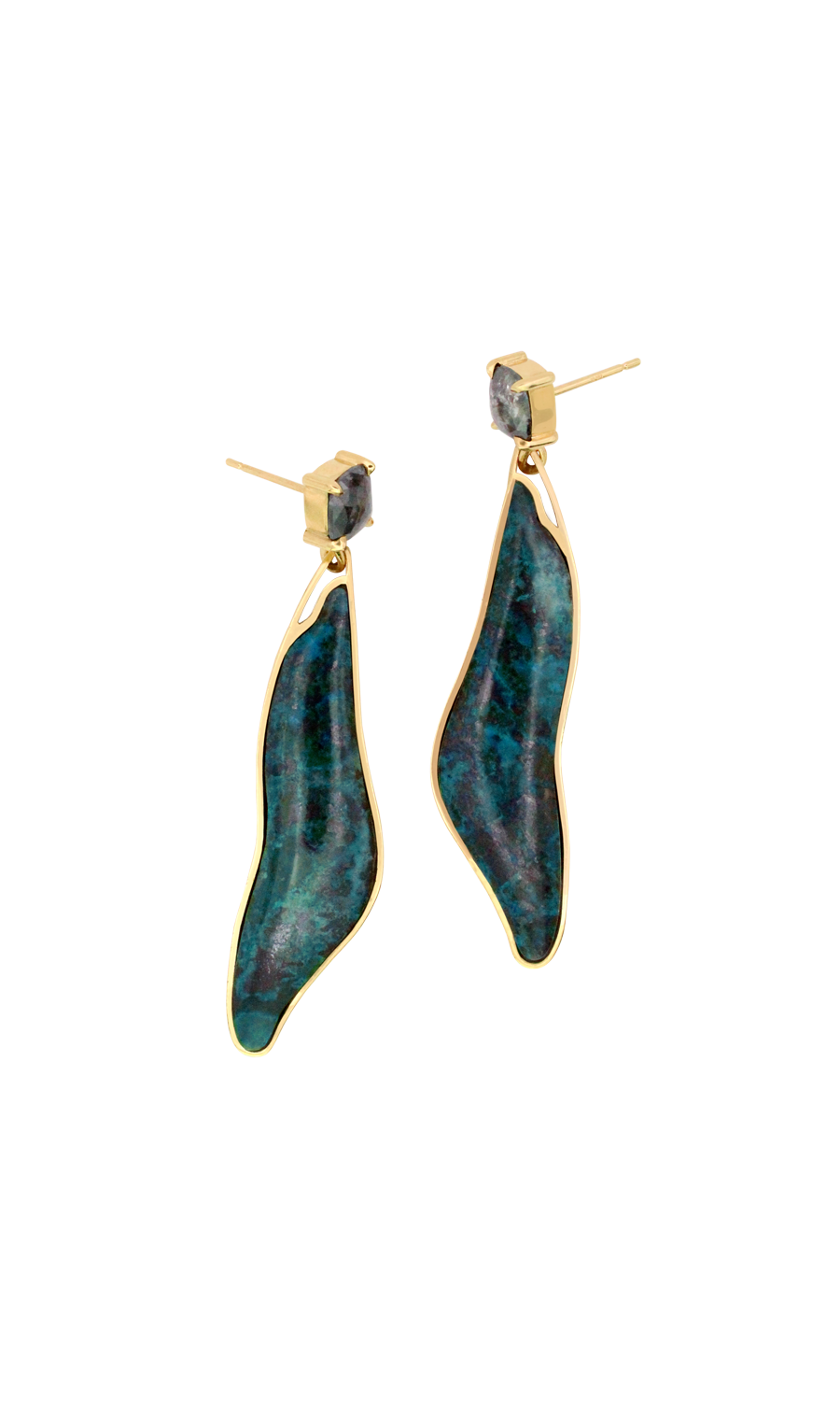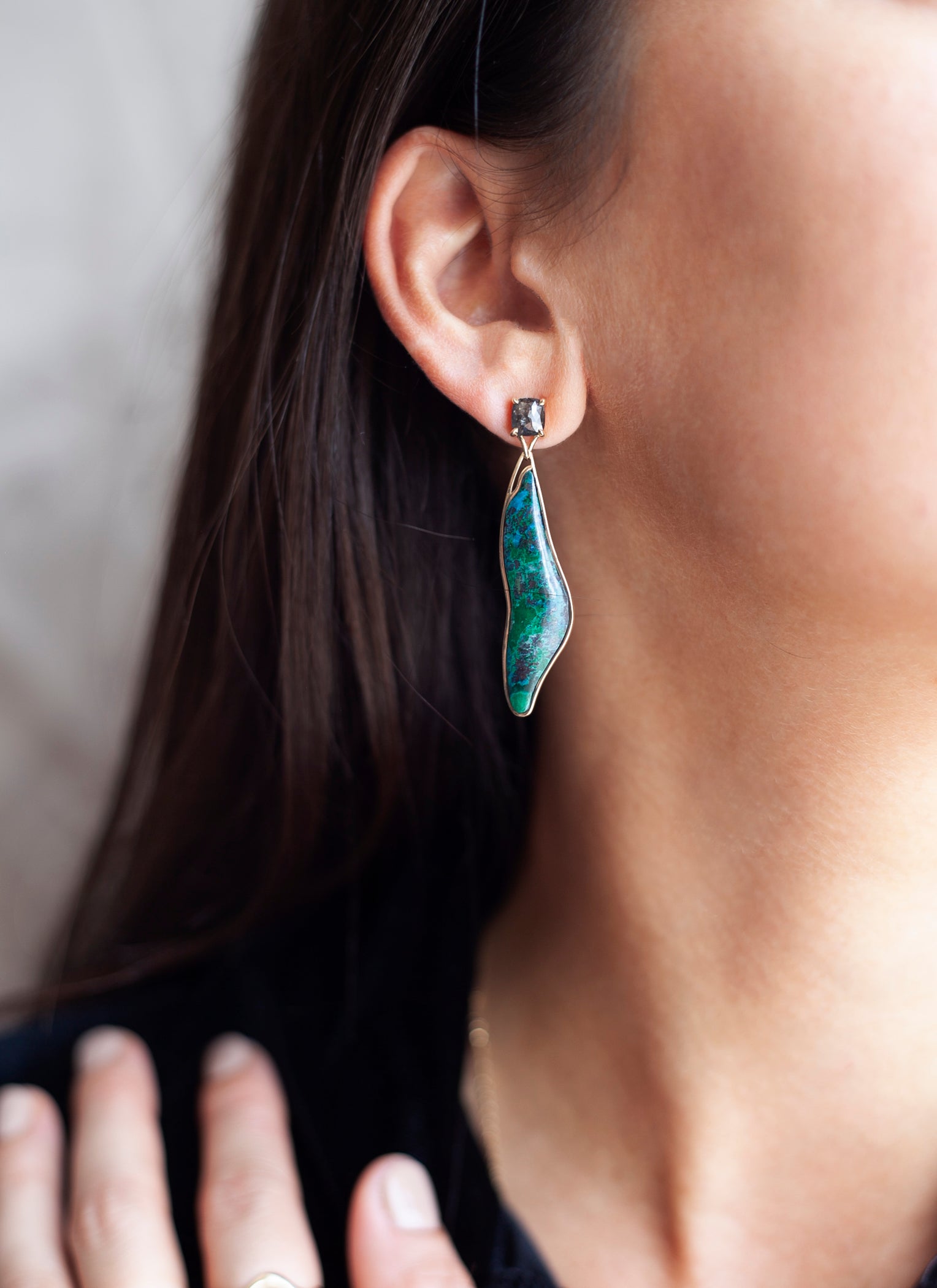 These stunning drop earrings are cut from a piece of rare Mexican Shadow kite, filled with the most striking earthbound hues.