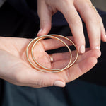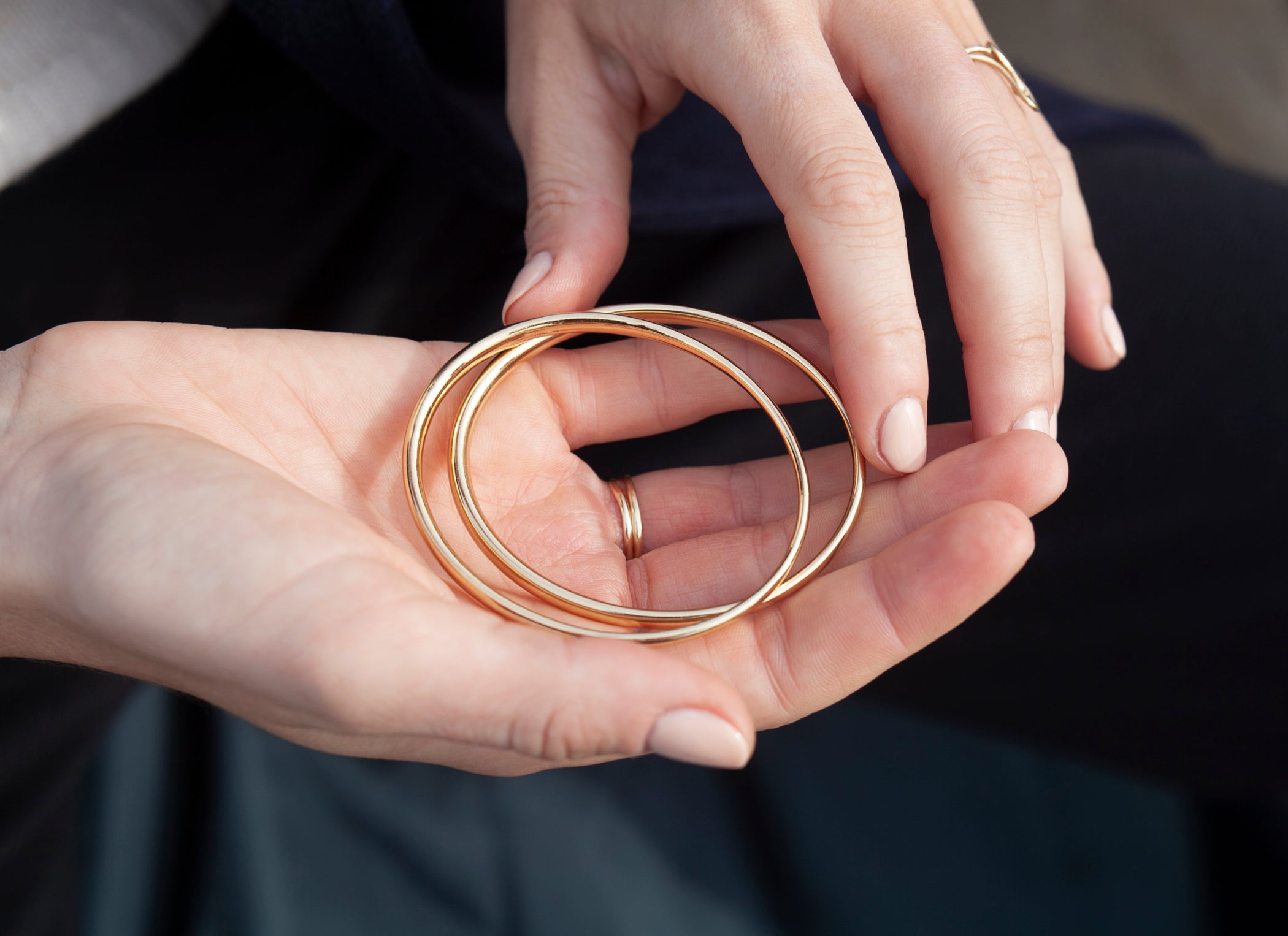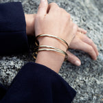 These bangles have an oval shape, to maintain a comfort while typing or writing. This ergonomic design gives this otherwise classic style a contemporary feel.