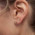 These earrings were designed in Vermont and hand fabricated in NYC. They are made from an alloy of upcycled and fairmined gold and feature ethically sourced natural diamonds. The natural diamonds weigh a combined .10cts and are G/H in color.