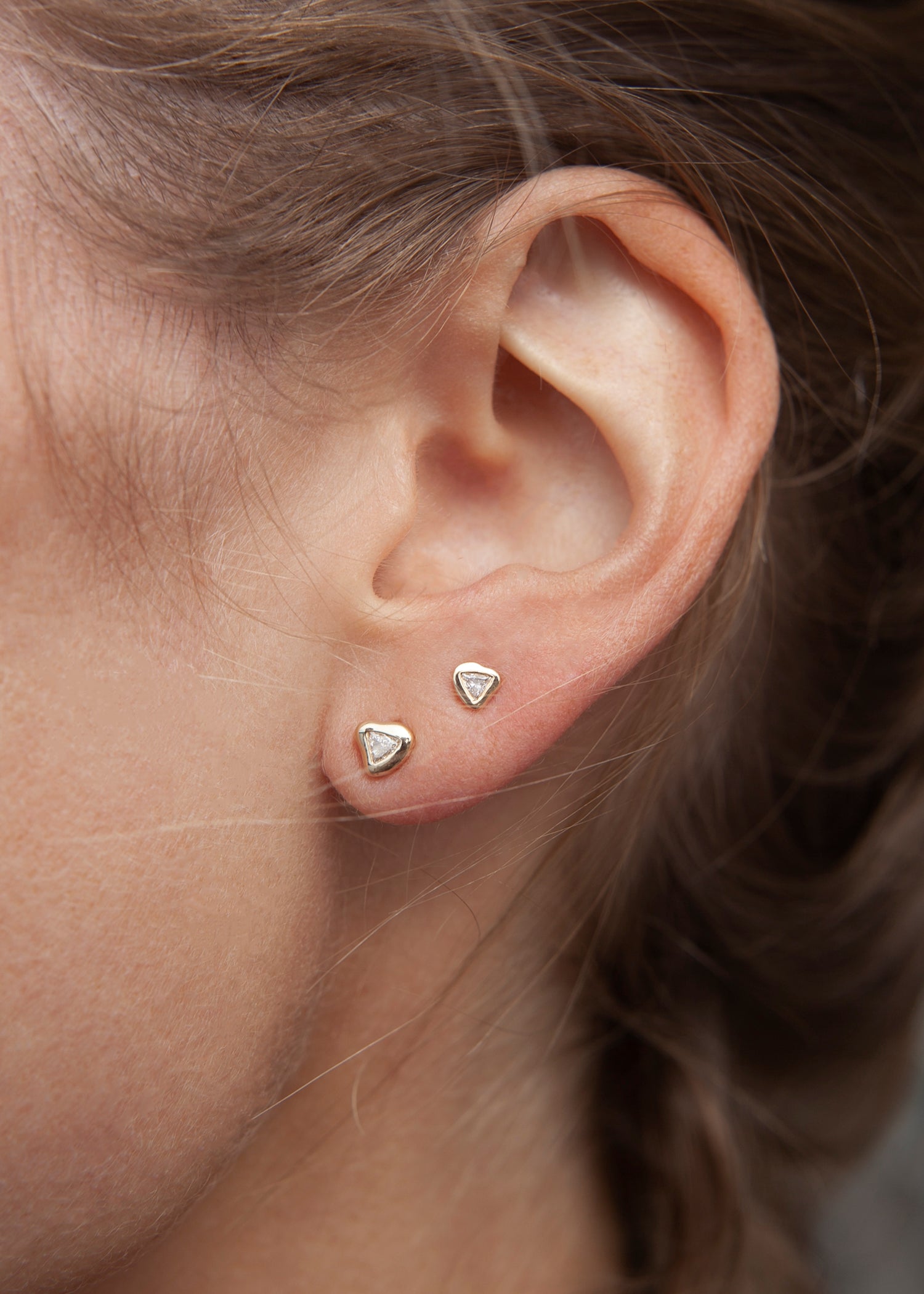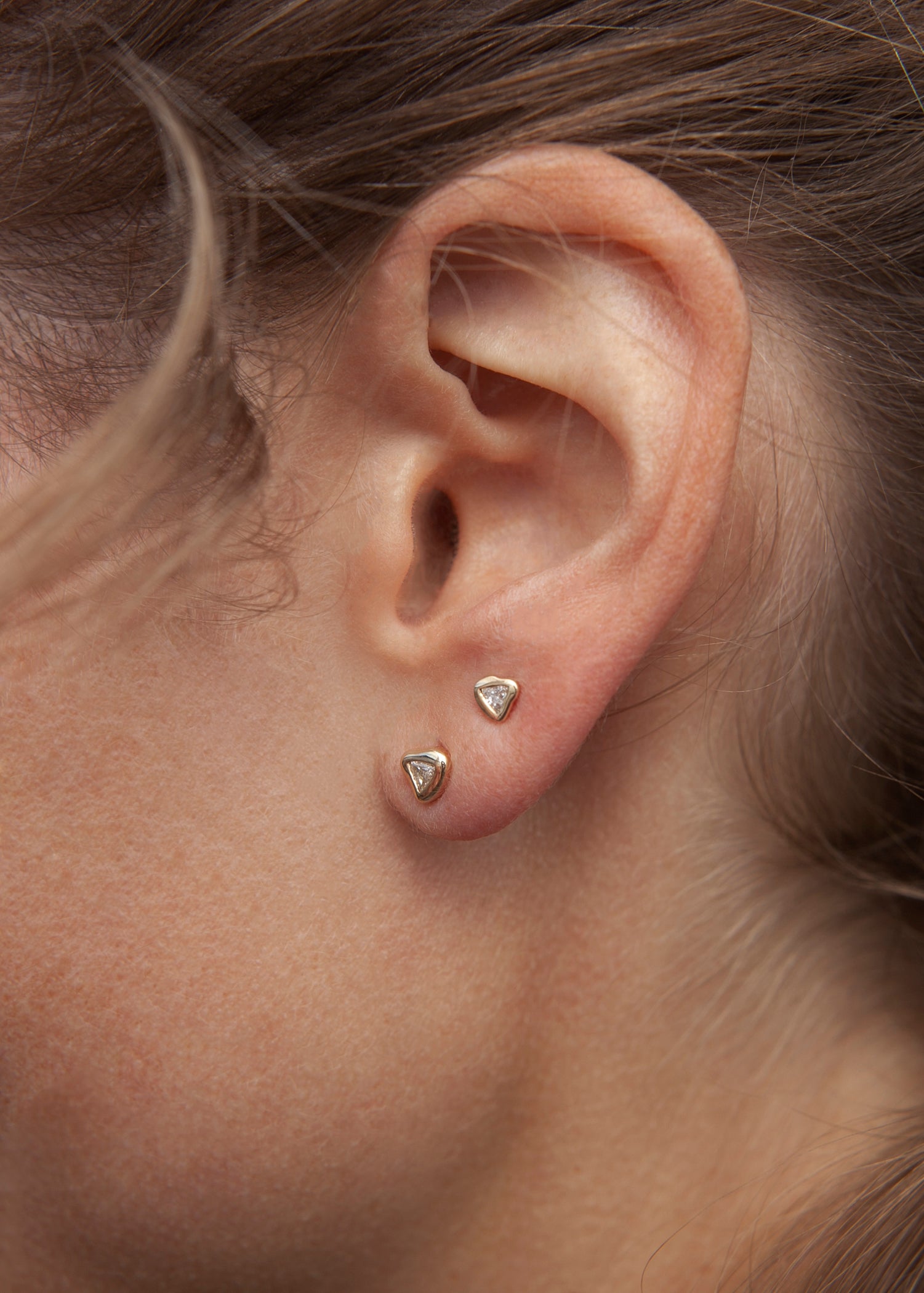 Like droplets of water, these studs are soft in each feature. They were inspired by rain puddles on asphalt and the reflections that move within them, and are perfect in an earring stack.