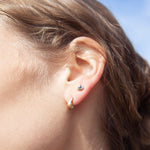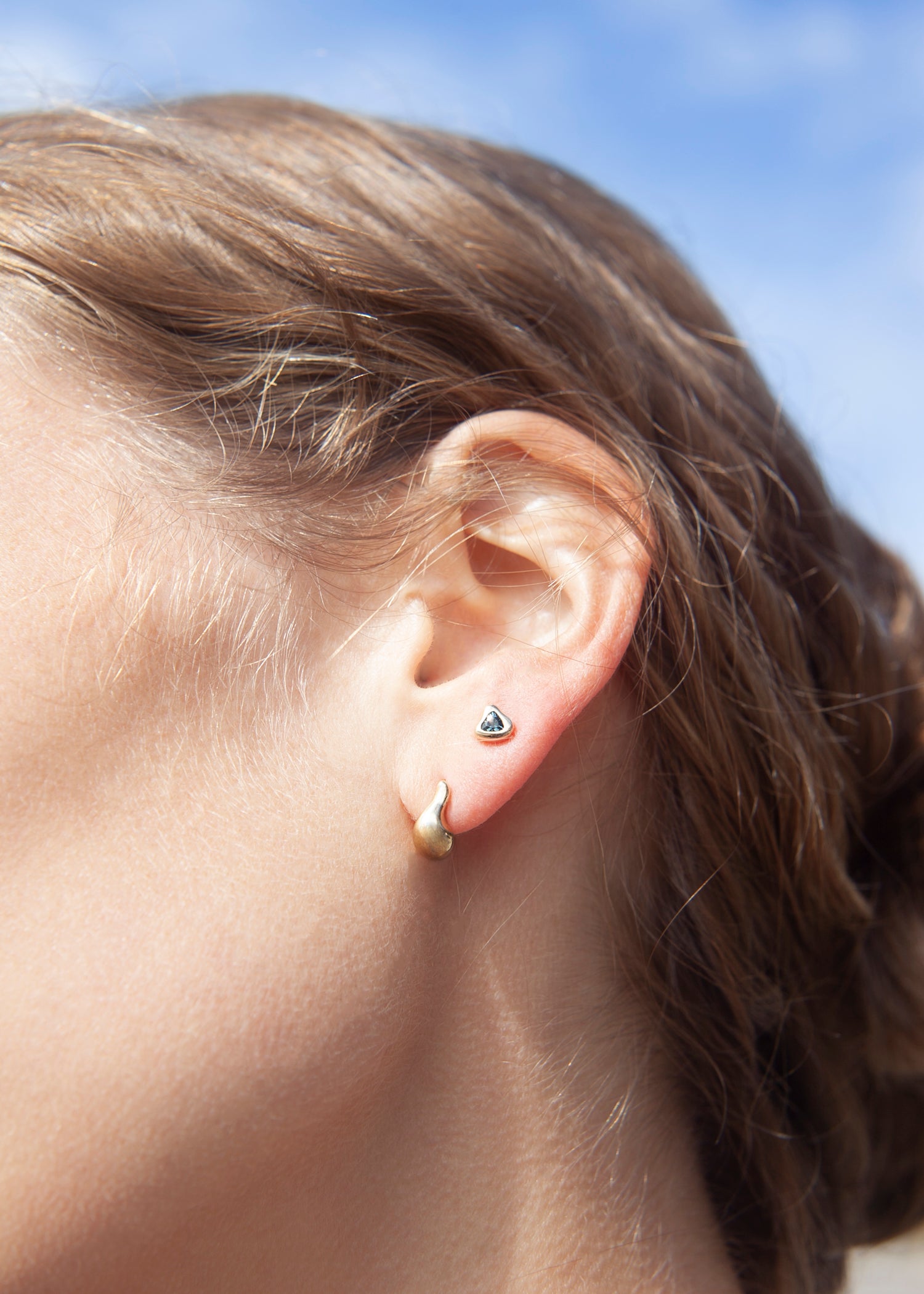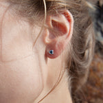These earrings were designed in Vermont and hand fabricated in NYC. The studs are made from an alloy of recycled gold and feature ethically sourced Australian Sapphires.