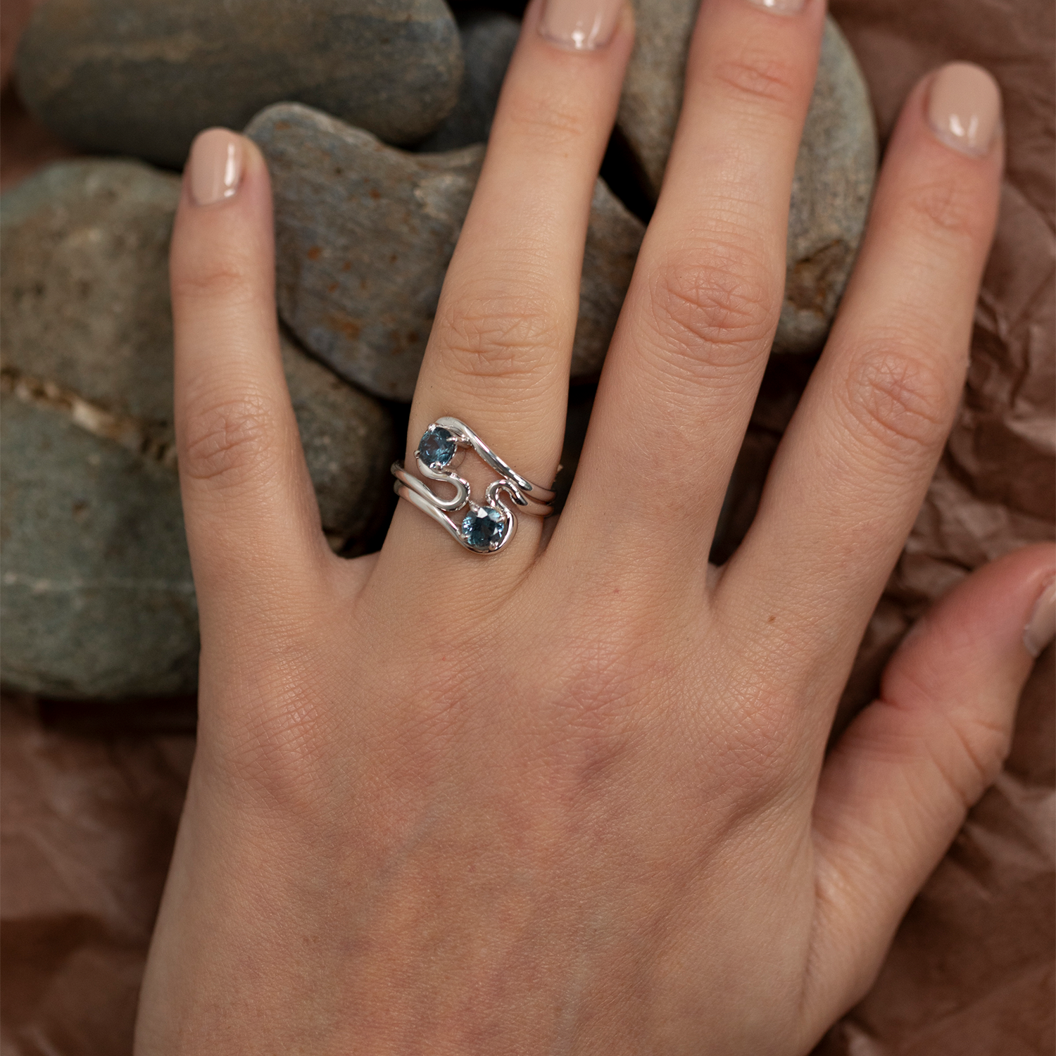 Faceted Spinel Wave Ring