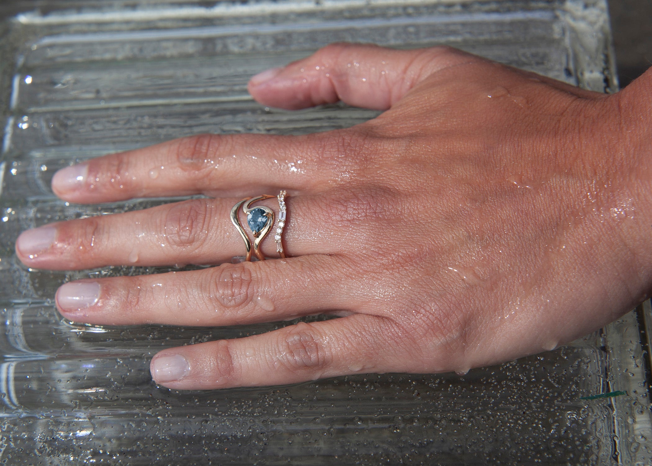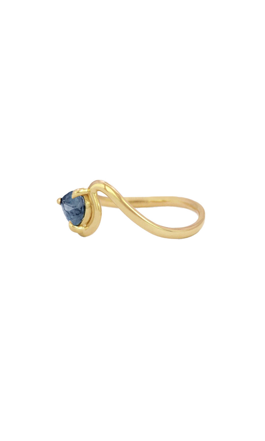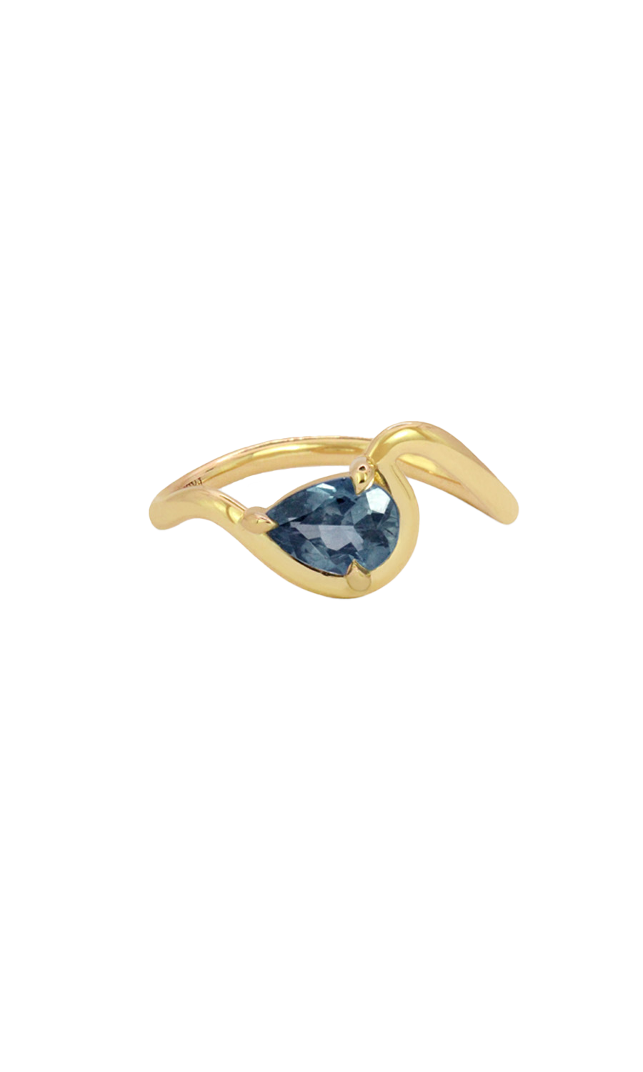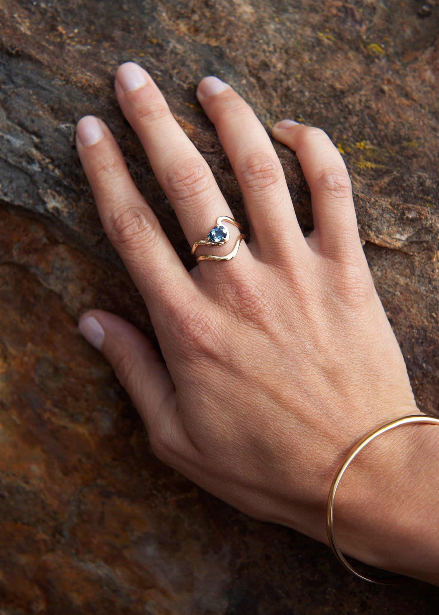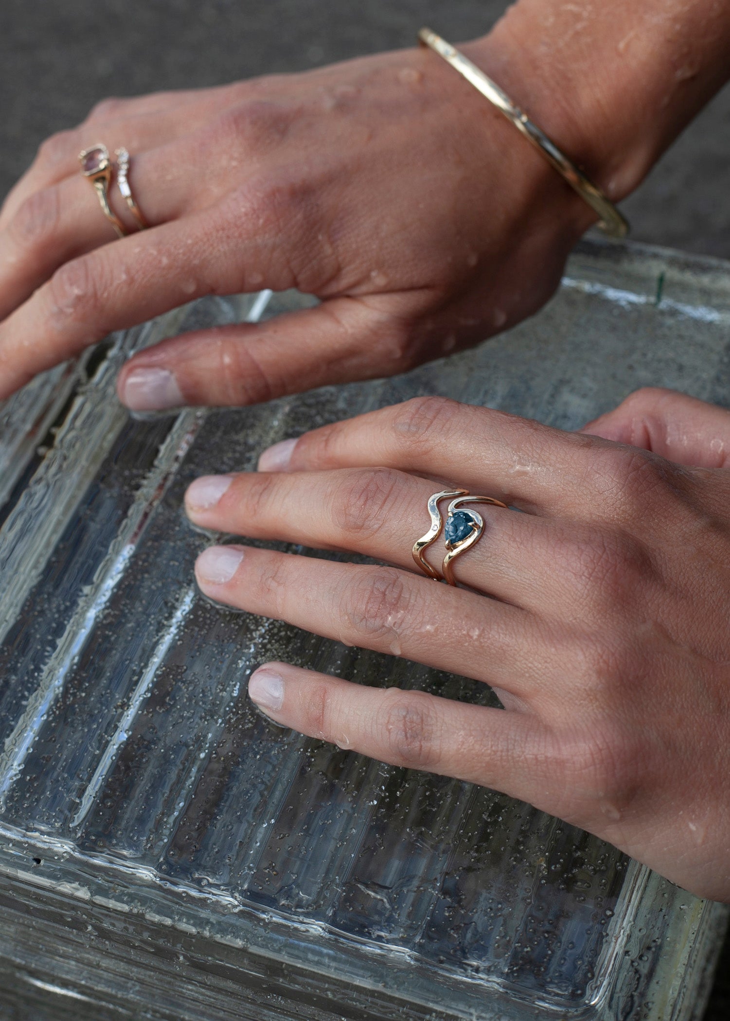 We'll never get enough of the Wave Band, and upon seeing this Montana Sapphire we knew just what to do with her. The beautiful blue of this stone perfectly contrasts with the buttery gold.