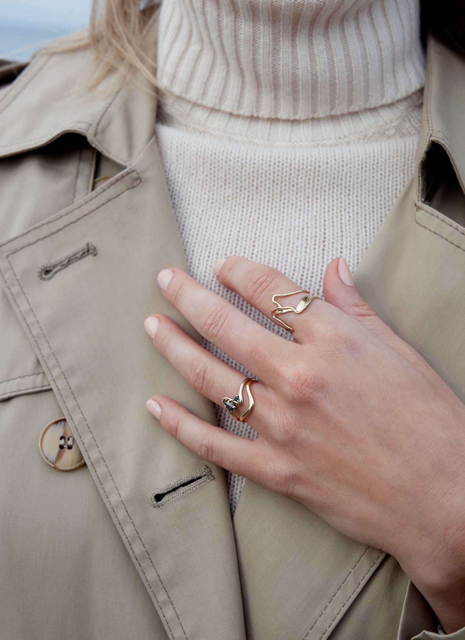In this contemporary take on the classic Toi et Moi ring, two Australian sapphires are prong set on an organic shaped gold band.