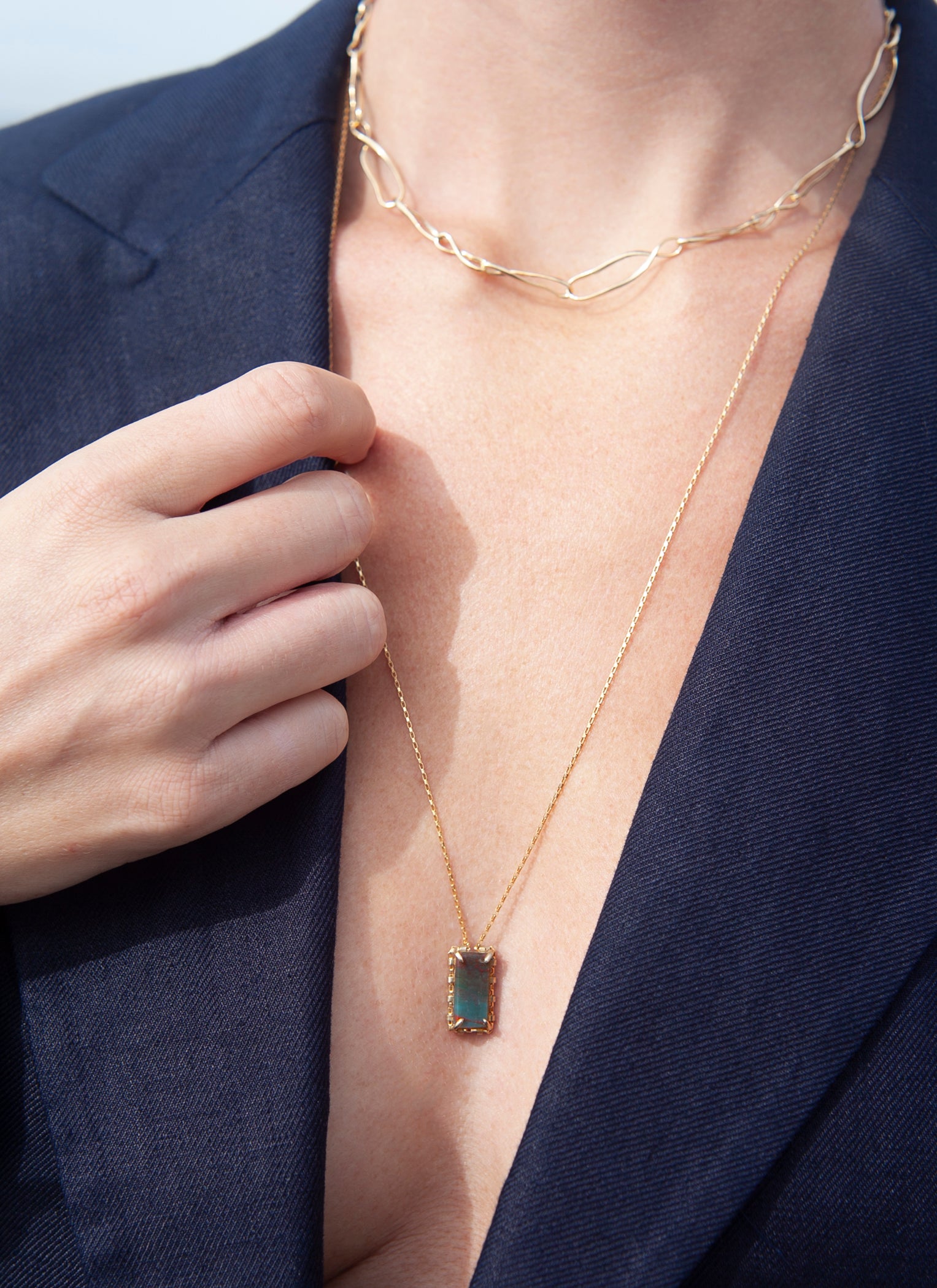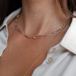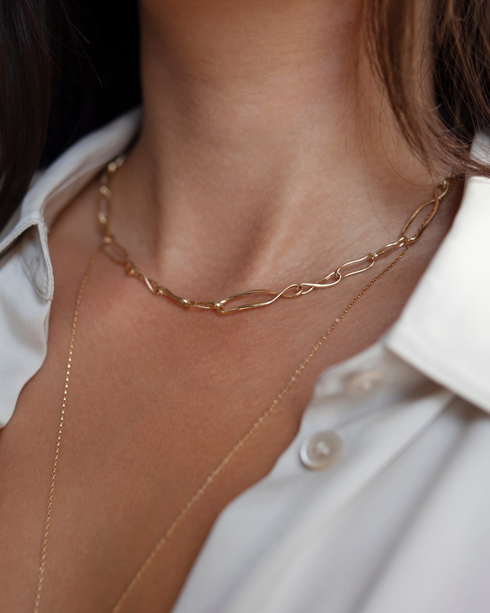 The perfect chain to layer or wear on its own. It's elegant and organic links rest easy on the natural curves of your body.
