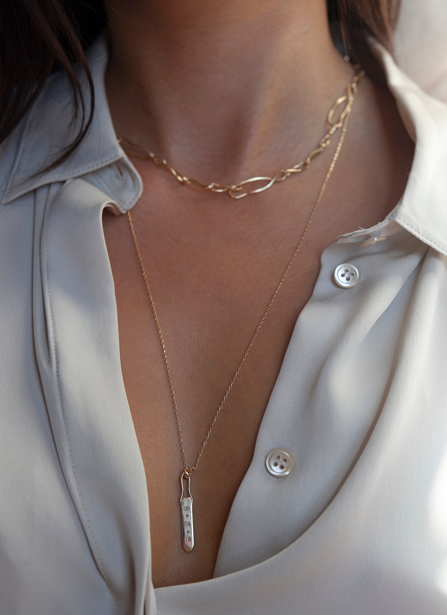 This necklace is hand fabricated between NYC and Vermont. Our silver is SCS certified, this means it is 100% recycled and ethically sourced material.