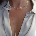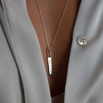 • Available in yellow or white gold on gold fill or silver chain with high polish finish.