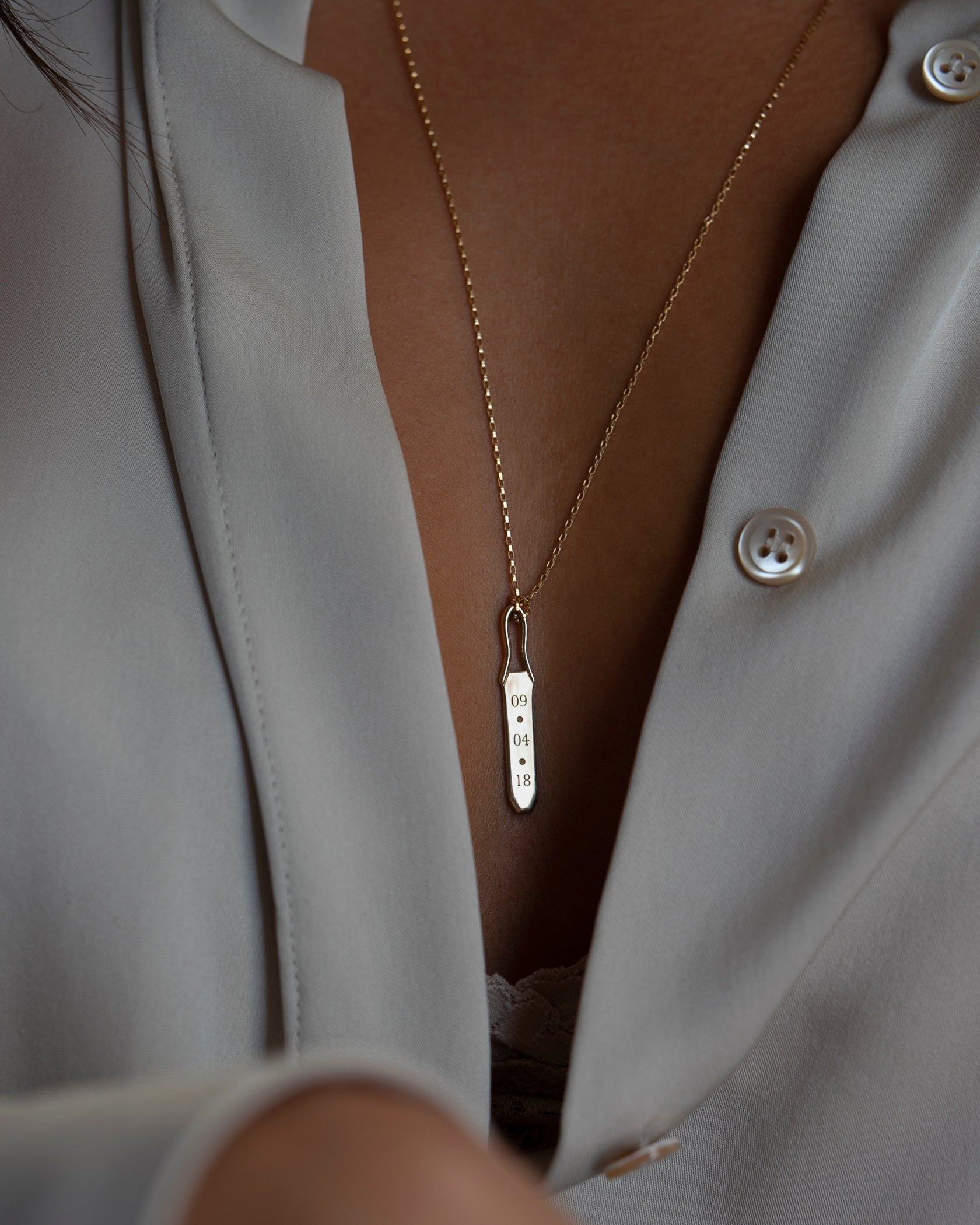 This pendant was designed in Vermont and fabricated in NYC. The pendant is made from an alloy of upcycled and fairmined gold. Each pendant comes with a bespoke engraving of your choice, and complimentary silver or gold fill chain.