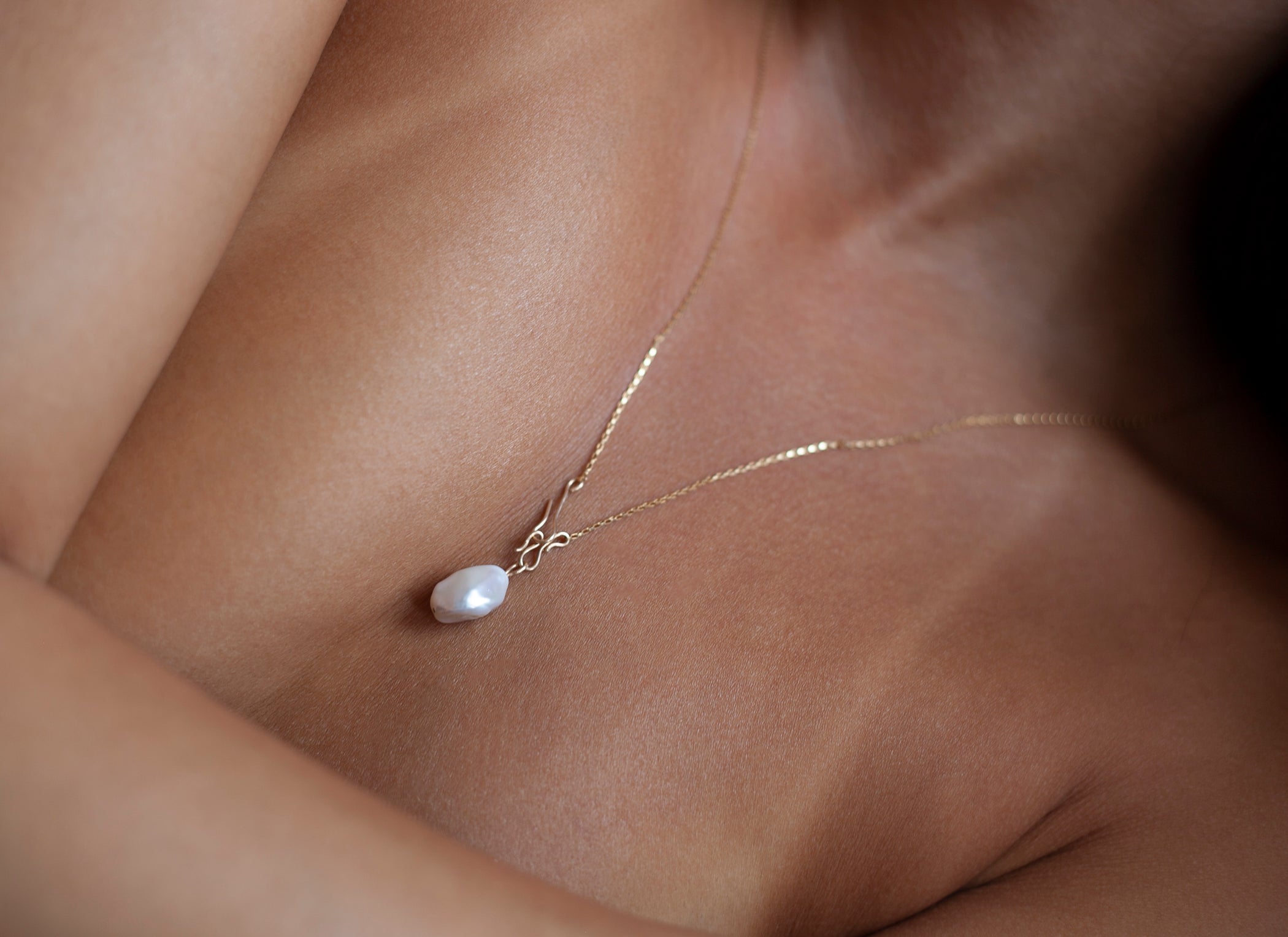 Our pearl pendant is hooked together by an elegant clasp, adding a delicate detail to a timeless design.