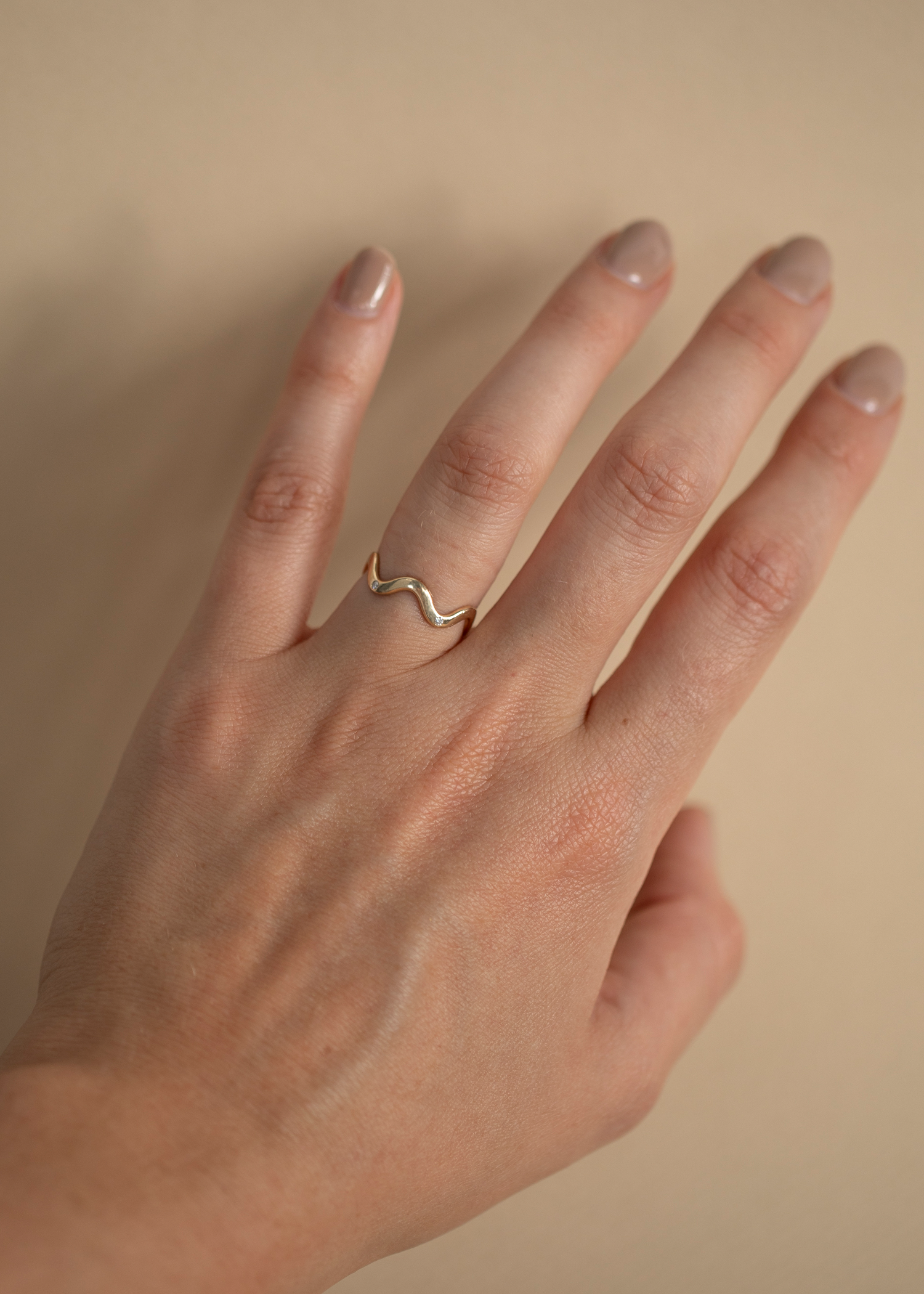 We've made so many custom versions of our All Around Wave Band featuring flush-set diamonds, that we had to add our version to the main collection. In this ring, small diamonds are perfectly spaced along each curve, adding extra shimmer to your ring stack.