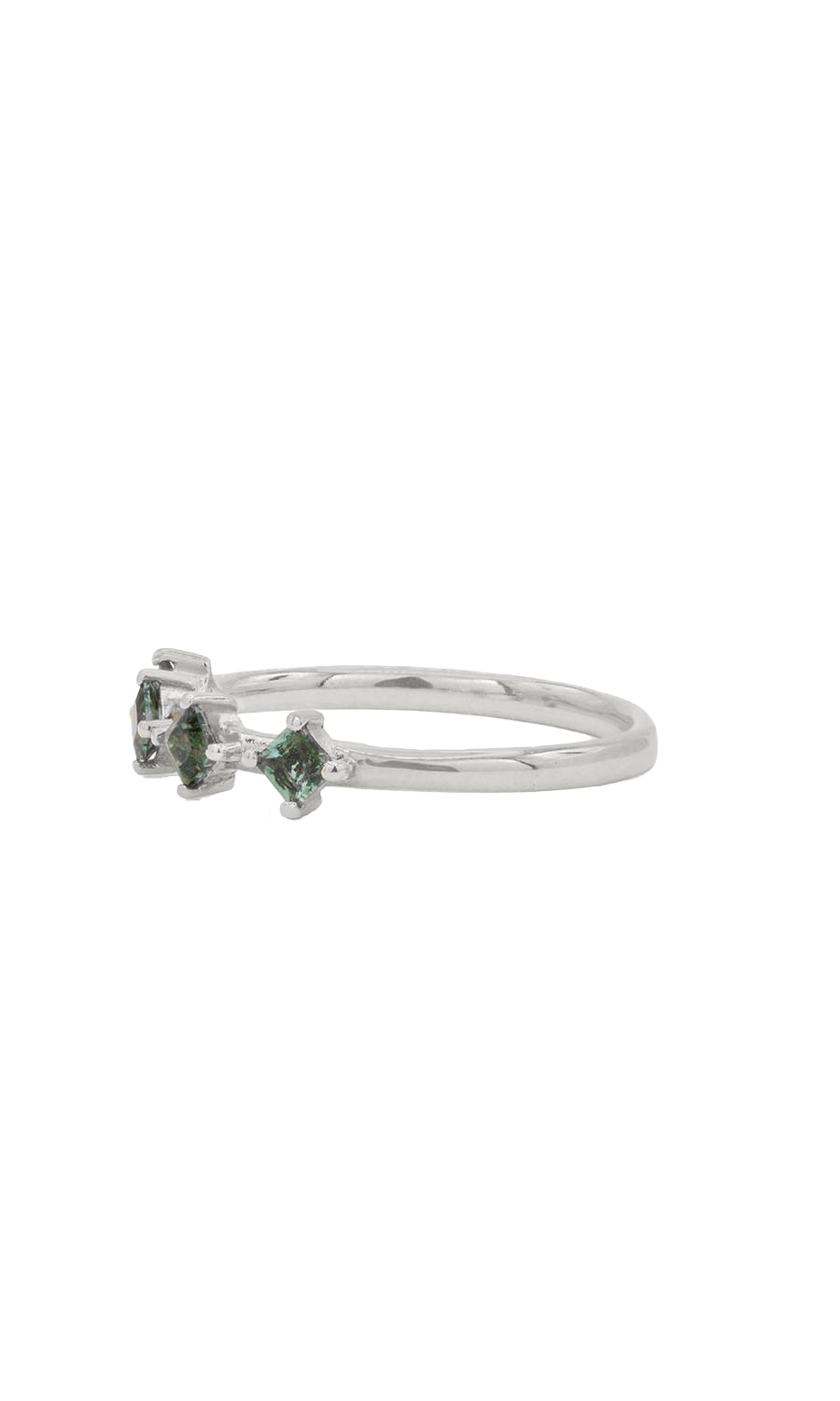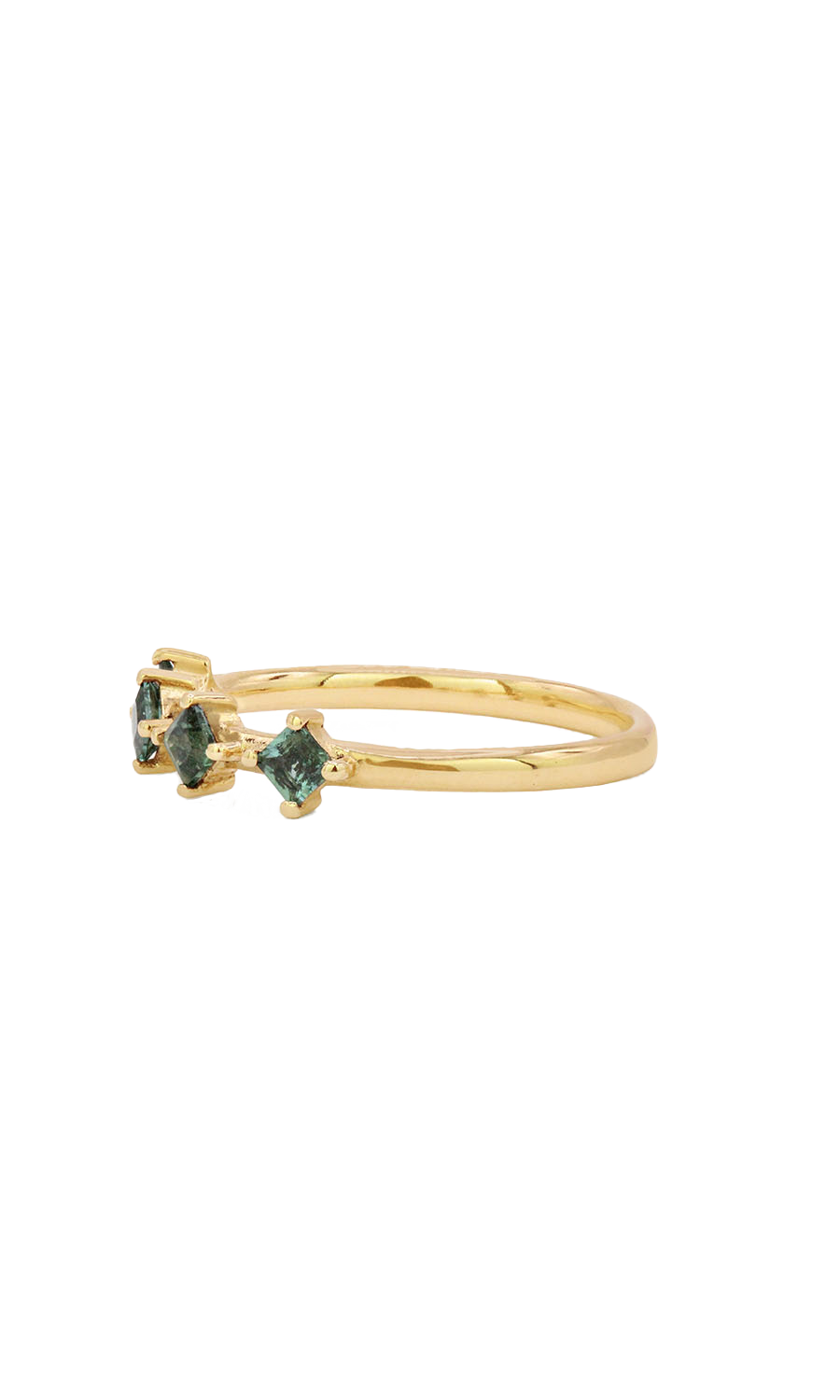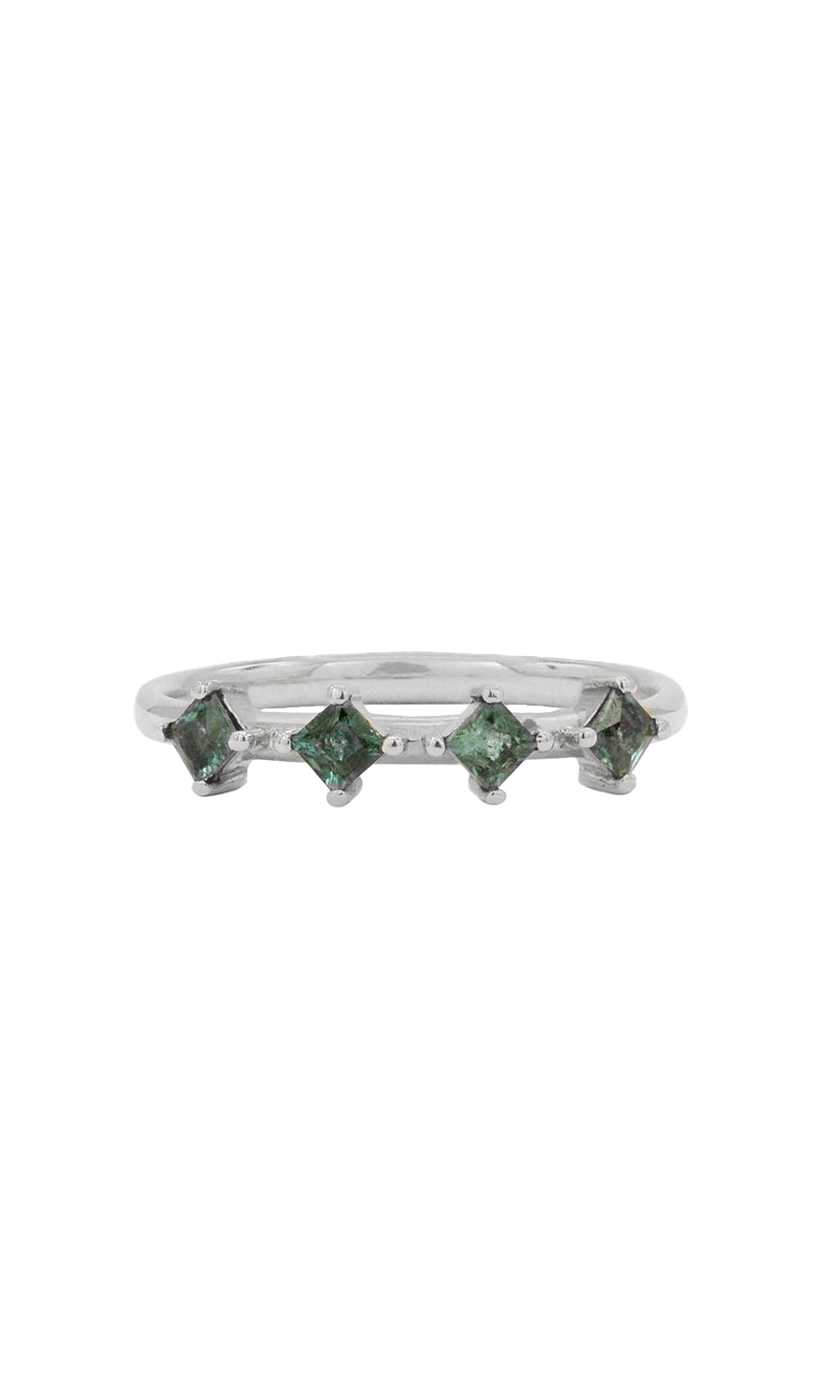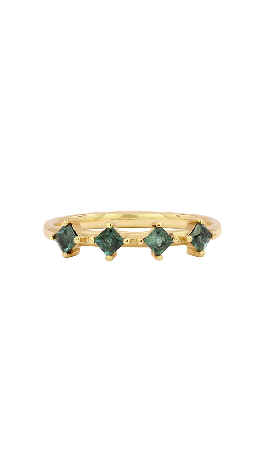 A sweet 4 stone band, featuring princess cut tourmalines. Intended to be worn as a subtle statement or addition to your stack (and styled with) your daily jewelry repertoire.