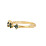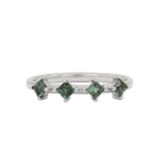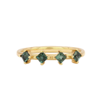 A sweet 4 stone band, featuring princess cut tourmalines. Intended to be worn as a subtle statement or addition to your stack (and styled with) your daily jewelry repertoire.