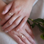 This ring set is hand fabricated in a 3rd generation family owned workshop in NYC, and is made of a recycled gold alloy.