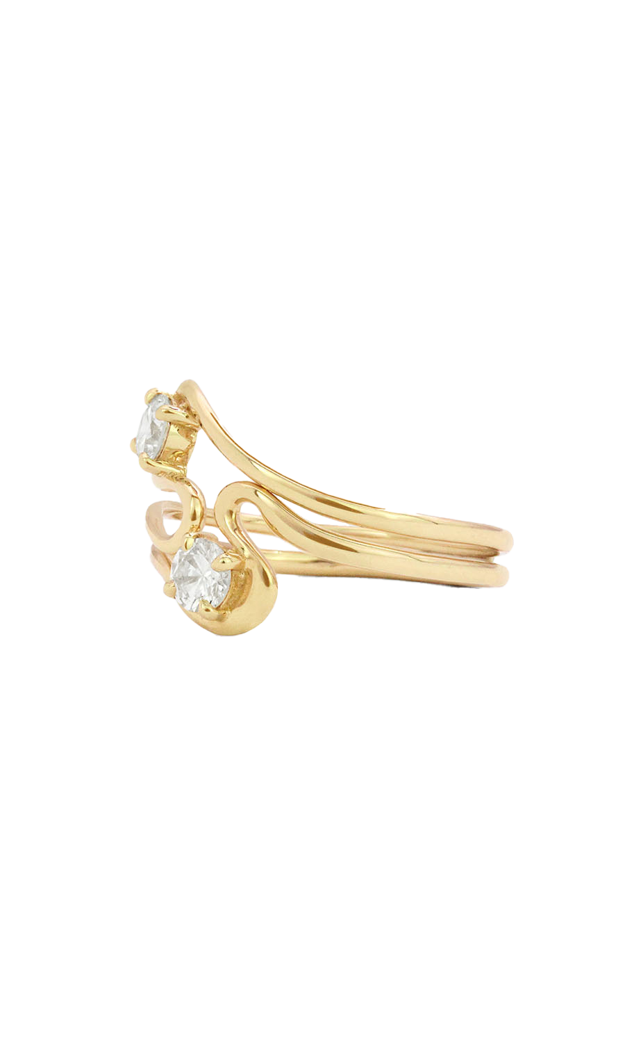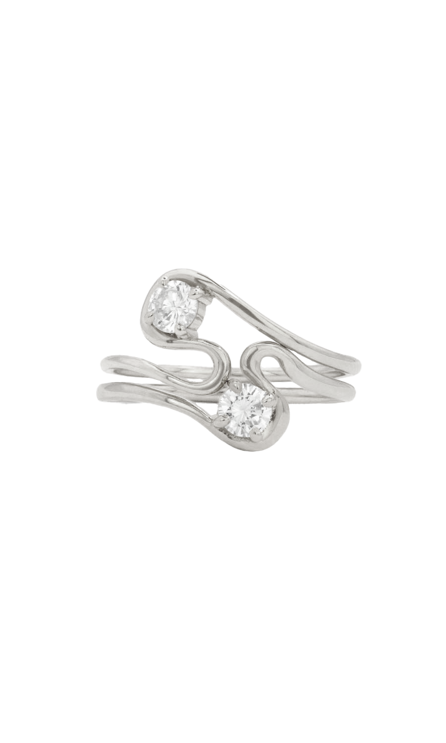 A modern take on the classic Toi et Moi style. Our Twin Flame ring set features two round diamonds, to be worn in union or individually.